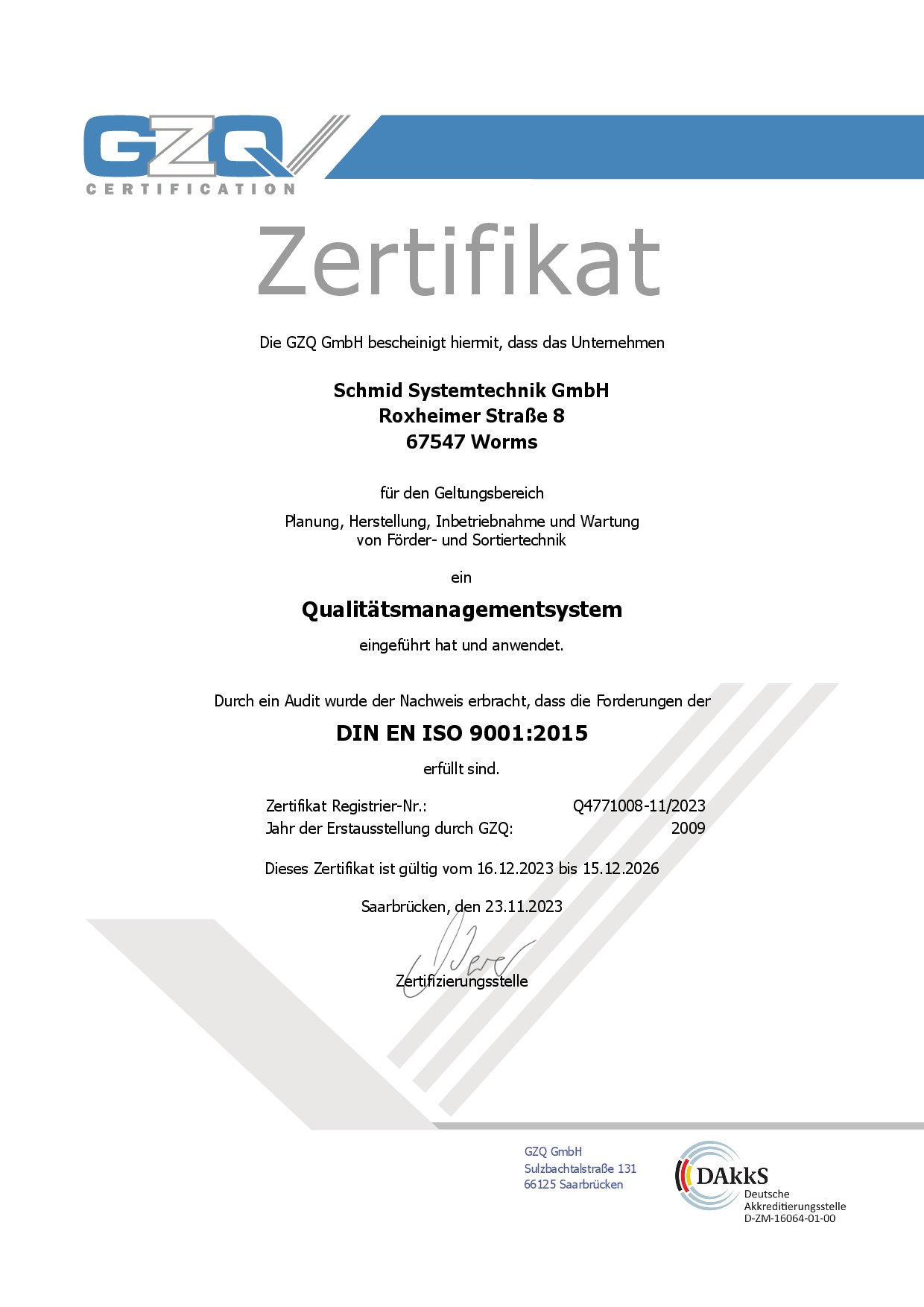 DIN EN ISO 9001:2015 Certificate